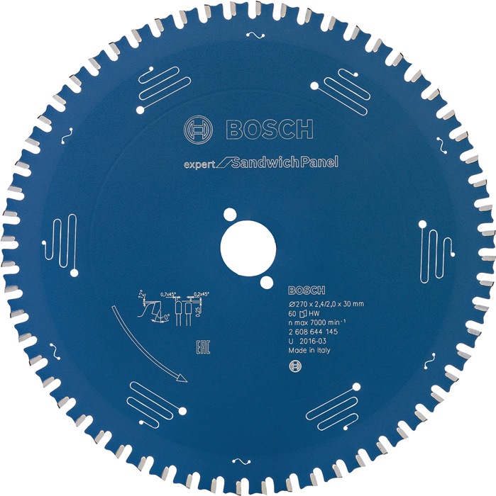 Kreissägeblatt AD 270mm Z.60 MTCG Bohr.30mm Schnitt-B.2,4mm BOSCH Expert for Sandwich Panel für Tauch- und Handkreissägen · für saubere Schnitte in Sandwichpaneelen mit Stahblechen (ein oder zweiseitig beschichtet) · Zähne aus Microteq für hohe Lebensdauer