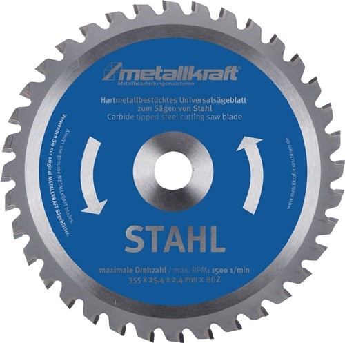 Produktinformationen "METALLKRAFT 3853504 Metallkreissägeblatt Stahl Sägeblatt-D. 355 mm Breite 2,4 mm"