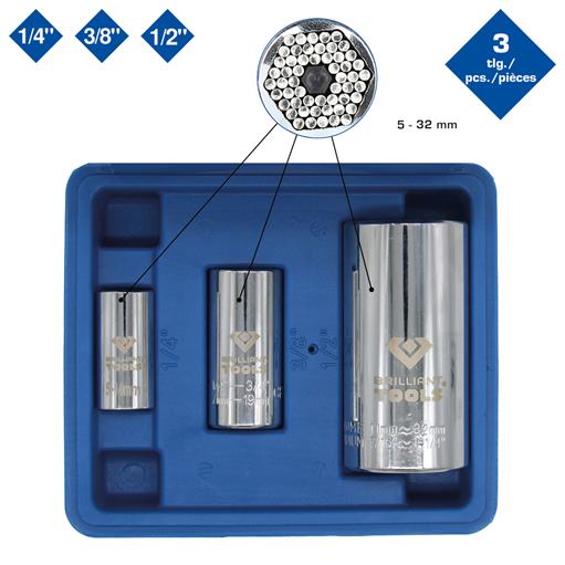 Brilliant Tools BT022003 Universal-Stecknuss-Satz, 3-tlg, 5 - 32 mm