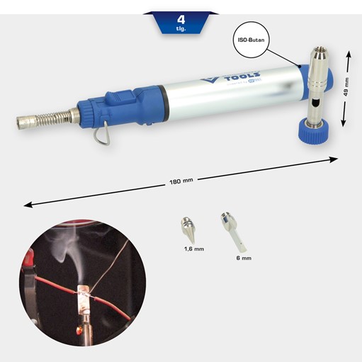 Brilliant Tools BT124009 Lötgerät-Satz, Gasgasbetriebenes Mikro-LötgerätAusführung: Feuerzeuggas/ISO-ButangasDer BRILLIANT TOOLS BT124009 Gas-Lötgerät-Satz kann für eine ganze Reihe kreativer Anwendungen genutzt werden, die eine hohe Präzision auf verschieden Materialien erfordern: Löten, Brandmalerei, Heißprägen, Schweißen und mehr. Für den Anwendungsbereich ist die Gaszufuhr stufenlos einstellbar. Für die Befüllung des Mikro-Lötgeräts ist handelsübliches Feuerzeuggas/ISO-Butangas ausreichend.Lieferumfang:1x gasbetriebenes Mikro-Lötgerät2x Lötspitze1x mit Messer