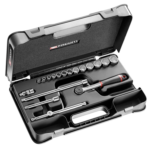Facom J.161-3P12U Steckschluessel-Set 3/8 J.161B, 19-tlg Steckschlüsselsortiment 3/8", 12-Kant, zöllig - 19 Teile - J.161B Produktstärken: Enthält: 1 Dichte Hochleistungs-Umschaltknarre 3/8": J.161B. 13 Steckschlüssel 3/8, 12-Kant, Zollmaße: J.1/4' - 5/16' - 3/8' - 7/16' - 1/2' - 9/16' - 5/8' - 11/16' - 3/4' - 13/16' - 7/8' - 15/16' - 1'. 2 Verlängerungen 3/8": L 125 mm (J.210) - L250 mm (J.215). 1 Kardan 3/8": J.240A. 1 Gleitgriff 3/8": J.120A. 1 Kurbel 3/8": J.110. Lieferung mit einem Piktogrammblatt zum Personalisieren Ihres Koffers. Leerer Koffer: BP.MBOXL. Warmgeformte Platte L (410 x 188 mm): PL.L11.